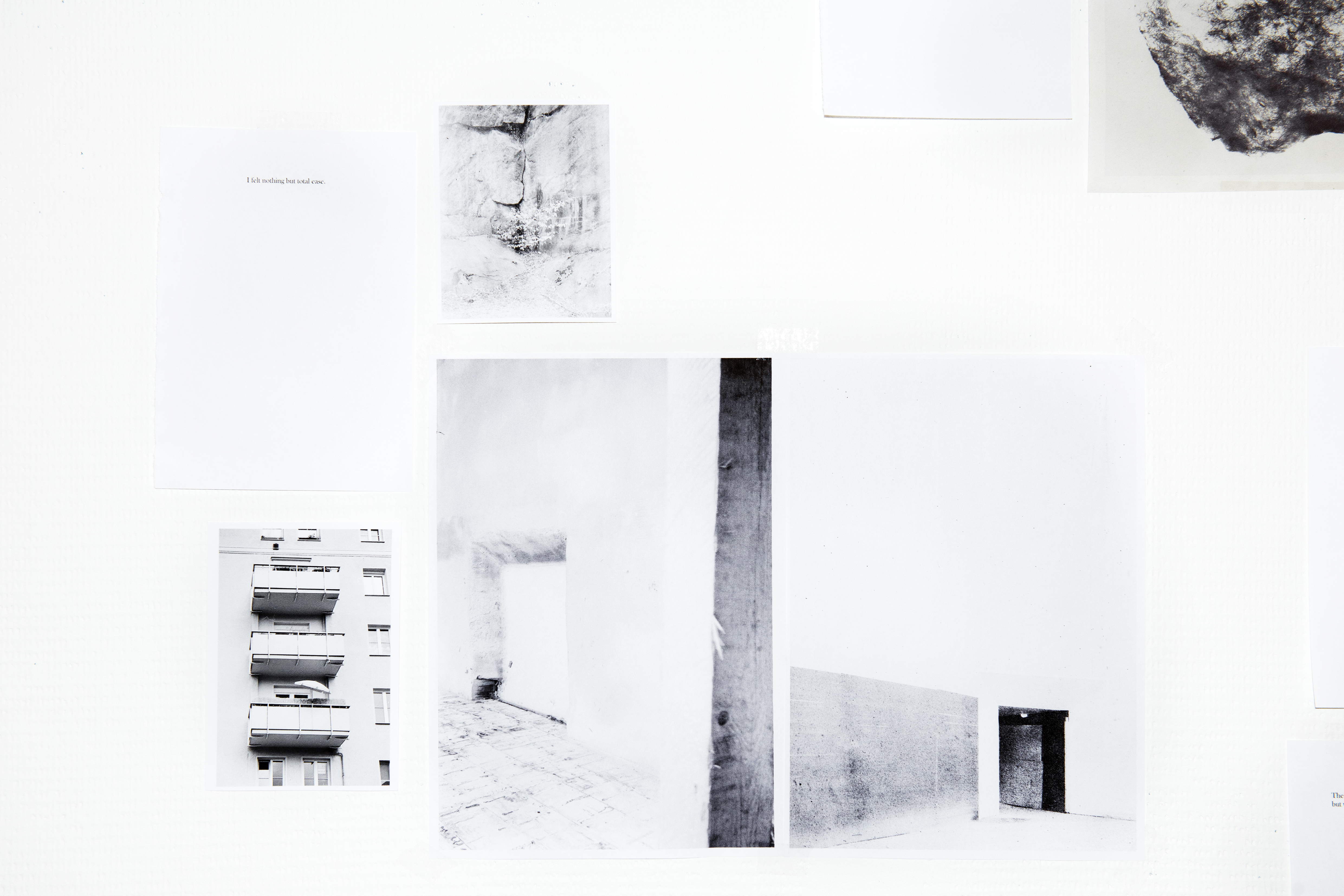 The images movie, change places, appear, disappear, become bigger or smaller or change colours. By frequently photographing the wall in her studio, Horré on one hand gives an insight in her play with images and working process, but on the other hand provides the viewer a simplified idea about how images can become a stage themselves by looking at them in different ways.