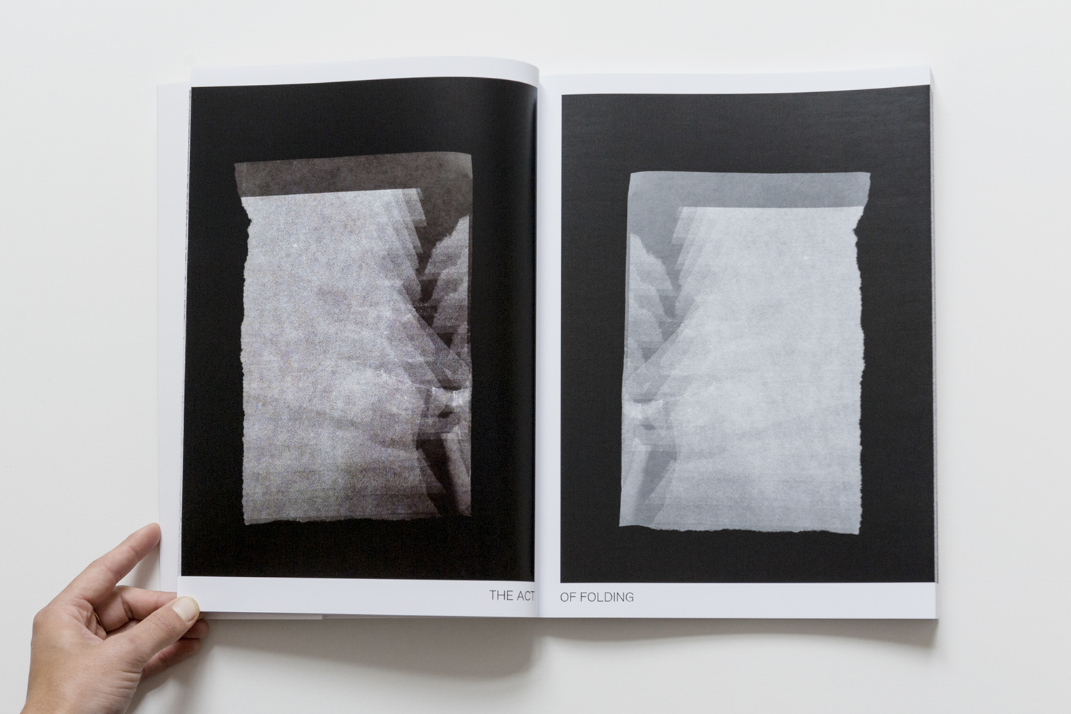 6) Fold Unfold Fold / An Extenstion zooms in on the physical working procces of The act of folding. In this book, the images dance on the wall and generate a view in the studio of the photographer,