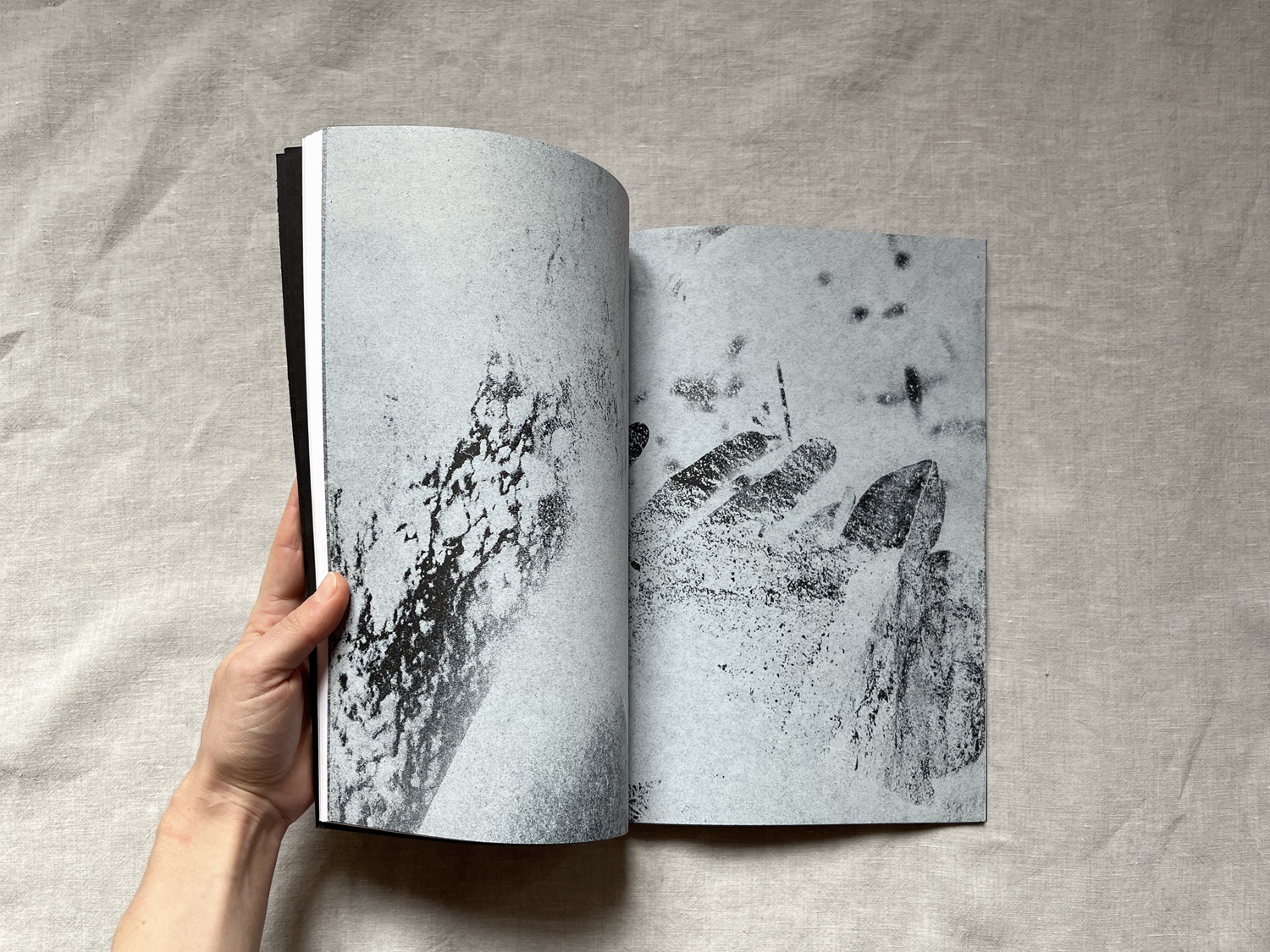 black ink on black paper, white ink on black paper, black ink on Lessebo 150, white ink on transparent. Printed in collaboration with Dok13 in Ghent.